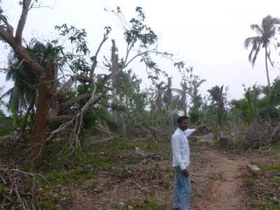 Gopalpur c'est la grande histoire. La récente, c'est son cyclone du 12 octobre. La vie a repris son quotidien. Je trouve qu'une certaine tristesse et amertume dans le comportement des habitants s'installent. Ce n'est pas nouveau : elles étaient là aussi avant les dommages du cyclone. Les toitures ont été endommagées sur les constructions en «dur» Les autres habitations sont parties en vrac et rebâties sur les mêmes bases. Les arbres et plantations ont subi beaucoup de casse.
