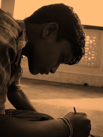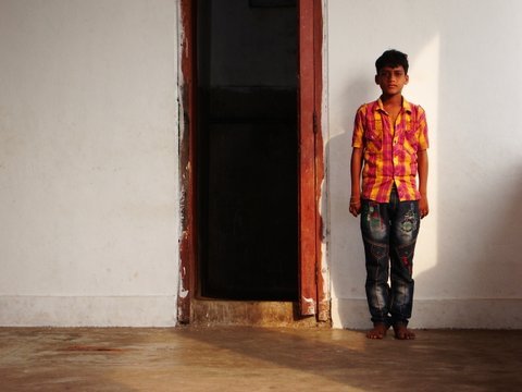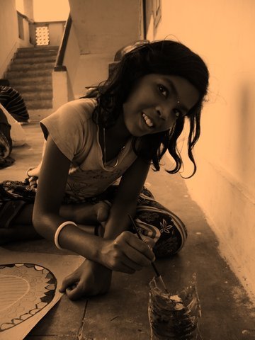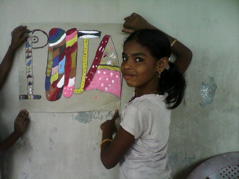 Je vous présente le petit dernier, V. Ganesh, il nous rejoint dans l'aventure. Il a 6 ans, il rentre en première année. Sa famille est une famille de pêcheur, il a un grand-frère de 8 ans, il est en 3ème classe à la même école, Sishu Vidya Mandir.