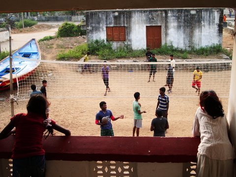 Matin "matinal”, vers 6 heures, le tamtam du chantier commence. Exactement au moment, ou le petit vent du matin qui s'introduit par les moustiquaires des fenêtres, nous permet de stopper les ventilateurs. Ce n'est pas une blague, ce pays surréaliste, ne peux survivre sans "sa”cacophonie, le cœur doit battre et résonner de toute sa force.