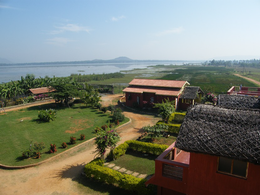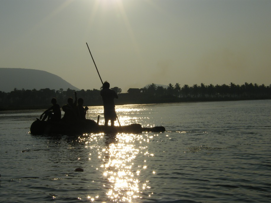 Petite cerise sur le gâteau, étant près d'un grand et beau lac, nous avons réservé une petite surprise aux enfants, une ballade en radeau, radeau fait de deux pirogues. Pirogues creusées dans des troncs de palmier, attachées côte-côte et réunies par une sorte de sommier en cordage. Soit petite embarcation pour 4 ou 5 personnes, conduite avec les bras d'un piroguier muni d'un long bambou appuyé au fond du lac. Chouette ballade, les oiseaux, les nénuphars et le «silence» luxueux en Inde, le silence.