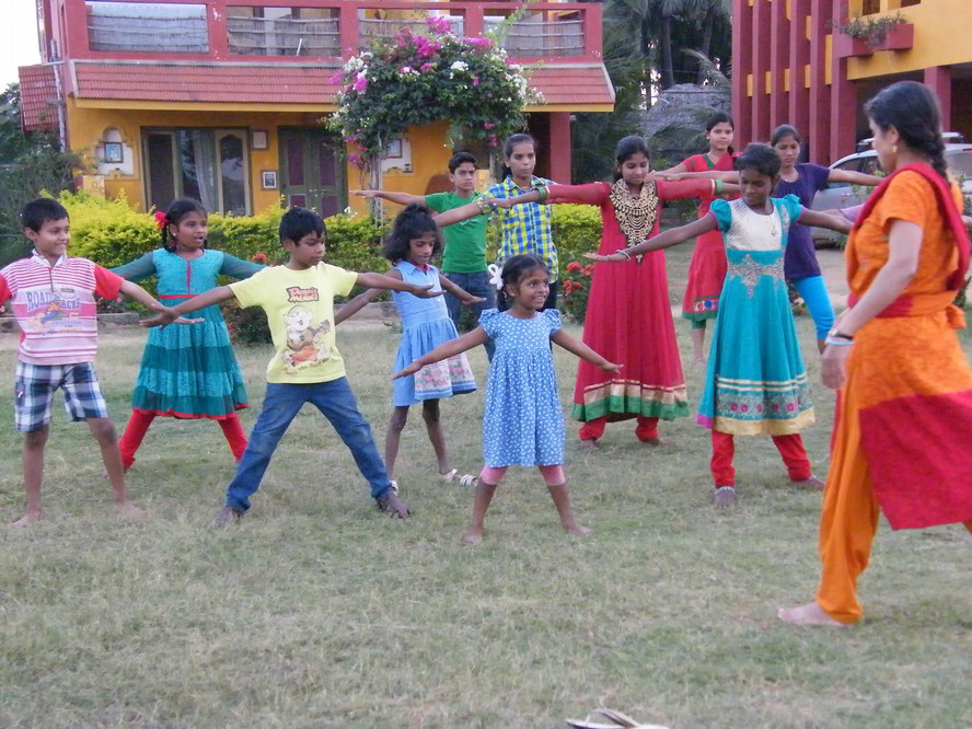 De bons moments pour tous…nous arrivons à Anakapelle, 2 autos et hop en route vers Kondakarla et Icha. Arrivée vers 17h. Les enfants sont assez impressionnés par l’endroit, au bord du lac, des bâtiments particuliers. Nous arrivons à l’heure où les enfants sont sur l’herbe avec tout le personnel. C’est l’heure du Tchai, petite collation pour tous, détente et jeux pour ceux qui peuvent se bouger et le bon air pour ceux qui ne peuvent qu’admirer et profiter du ciel encore bleu de cette heure, sont concernés :
