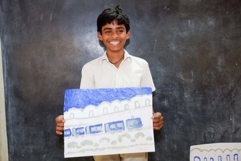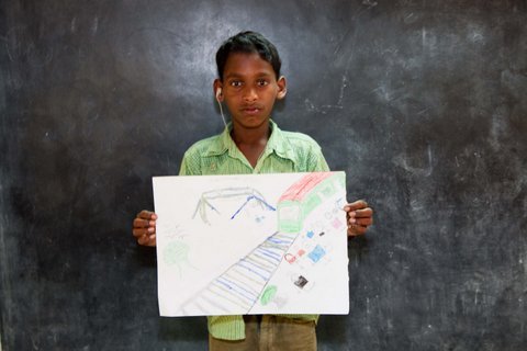Dessins réalisés par les enfants (beaucoup d'entre eux sont sourds et muets). Travail sur le thème du train et de la gare. Ces dessins ont été exposés au festival WEM de Carnoules dans le Gars...